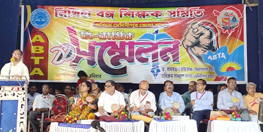 নিজস্ব সংবাদদাতা, মেদিনীপুর, ২ নভেম্বর: ব্যাভিচার ও দুর্নীতি ইস্যুতে রাষ্ট্রশক্তি নীরব থেকে তাকে আড়াল করার চেষ্টা করছে। এই অভিযোগ তুলে শিক্ষাকে বাঁচাতে আরও বড় আকারে সামাজিক আন্দোলন গড়ে তোলার আহ্বান জানাল নিখিল বঙ্গ শিক্ষক সমিতি (ABTA)।