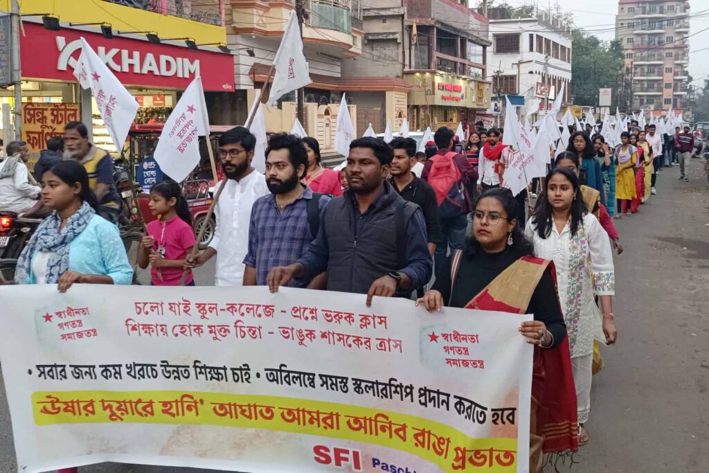 নিজস্ব সংবাদদাতা, মেদিনীপুর: পাঠ্যবইতে বিভেদের সিলেবাস, ক্লাসরুমের বেঞ্চে জাতপাতের ভাগাভাগি রুখে দেওয়ার শপথে— ‘শিক্ষা বাঁচাও, দেশ ও রাজ্য বাঁচাও’— এই আহ্বানে মেদিনীপুর শহরে এসএফআই জেলা কমিটির ডাকে মিছিল সহকারে সমাবেশ হয় শনিবার মেদিনীপুর কলেজ সংলগ্ন নেতাজি মূর্তির পাদদেশে।